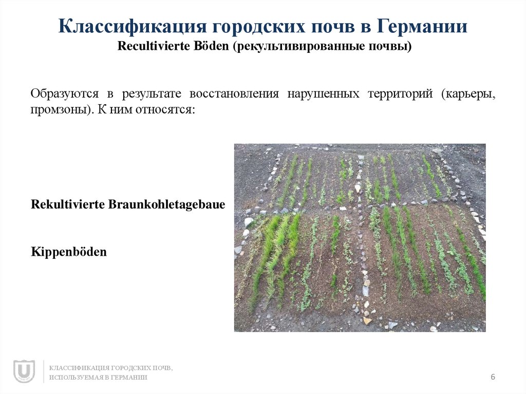 Классификация городских почв в ГерманииRecultivierte Böden (рекультивированные почвы)