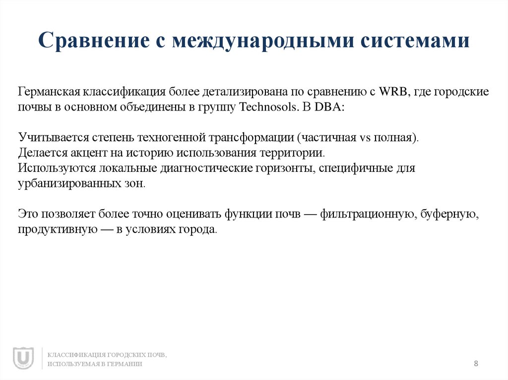Сравнение с международными системамиГерманская классификация более детализирована по сравнению с WRB, где городские