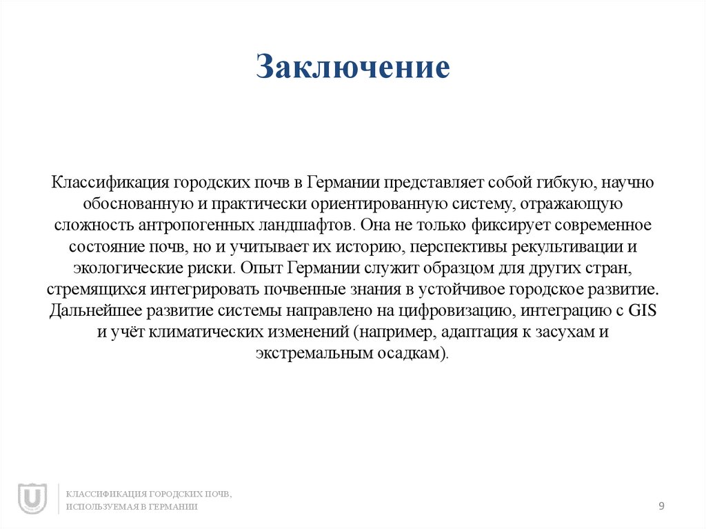 ЗаключениеКлассификация городских почв в Германии представляет собой гибкую, научно