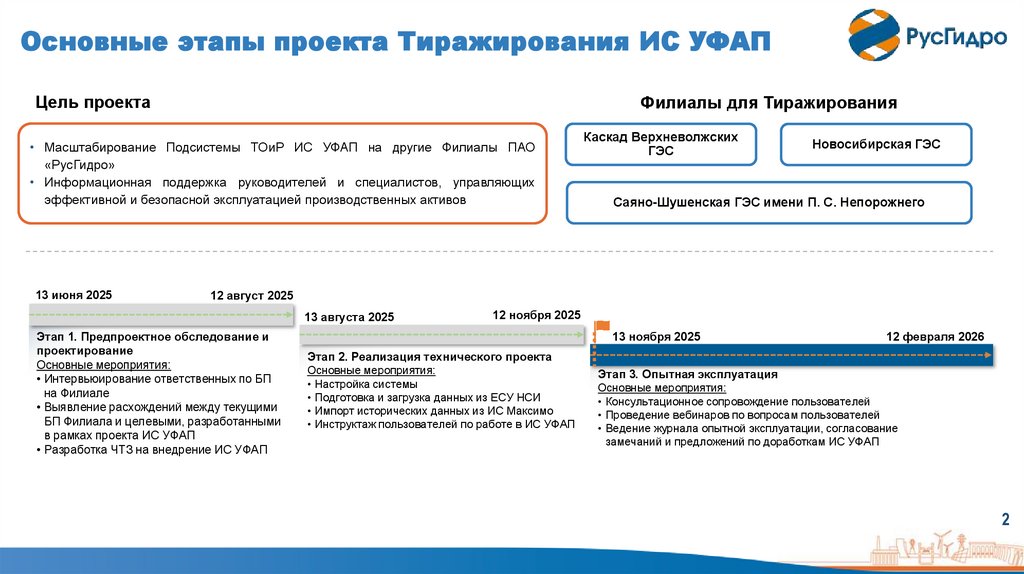 Основные этапы проекта Тиражирования ИС УФАПЦель проекта
