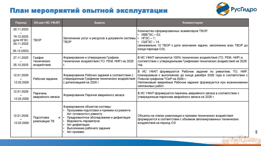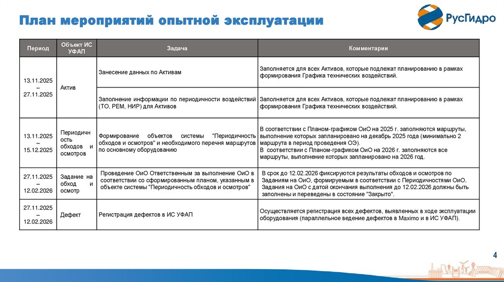 План мероприятий опытной эксплуатацииПериод