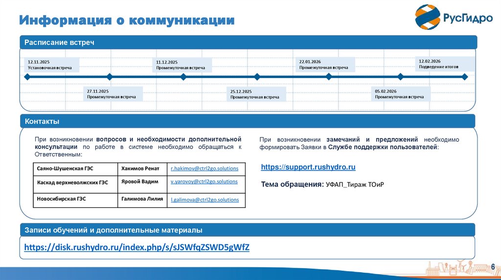 Информация о коммуникацииРасписание встреч