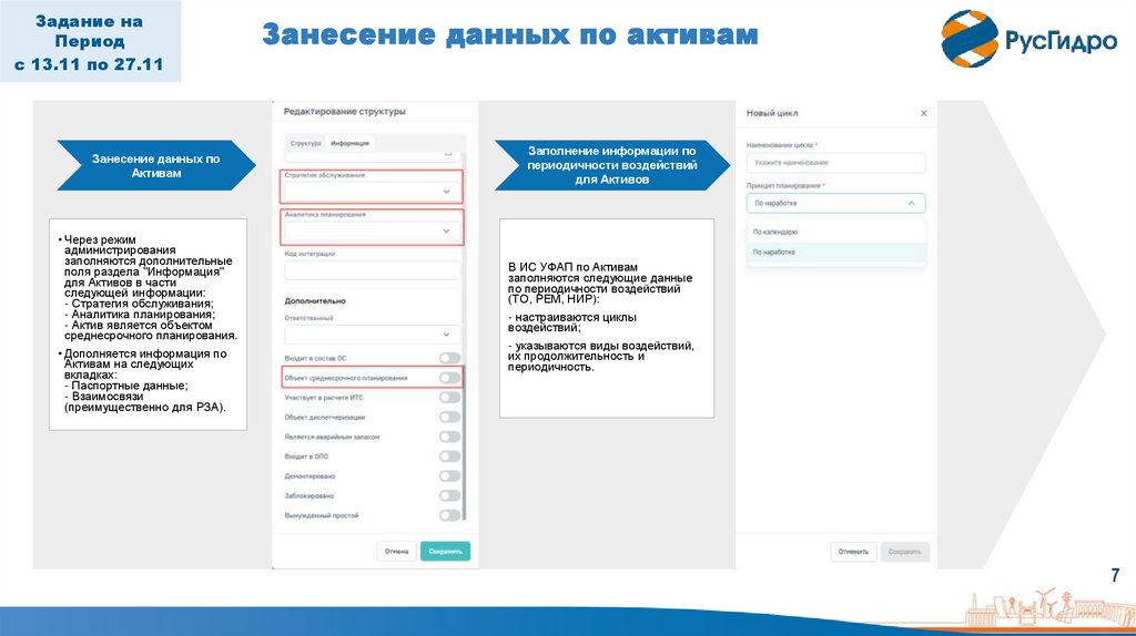 Занесение данных по активам