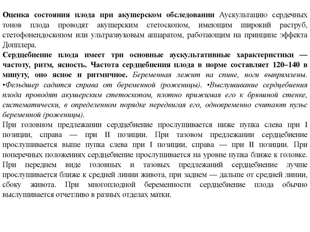 движений, выслушивании сердечных сокращений плода. При