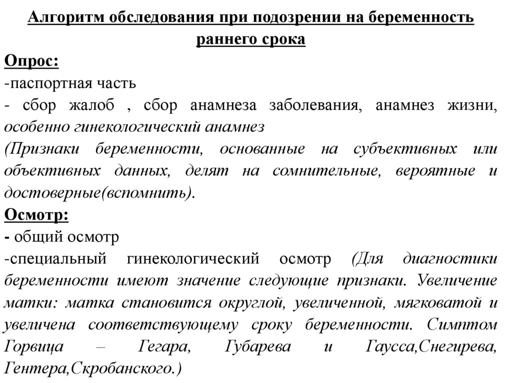 Алгоритм обследования при подозрении на беременностьраннего срока