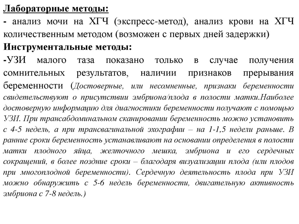 Лабораторные методы:- анализ мочи на ХГЧ (экспресс-метод), анализ крови на ХГЧ