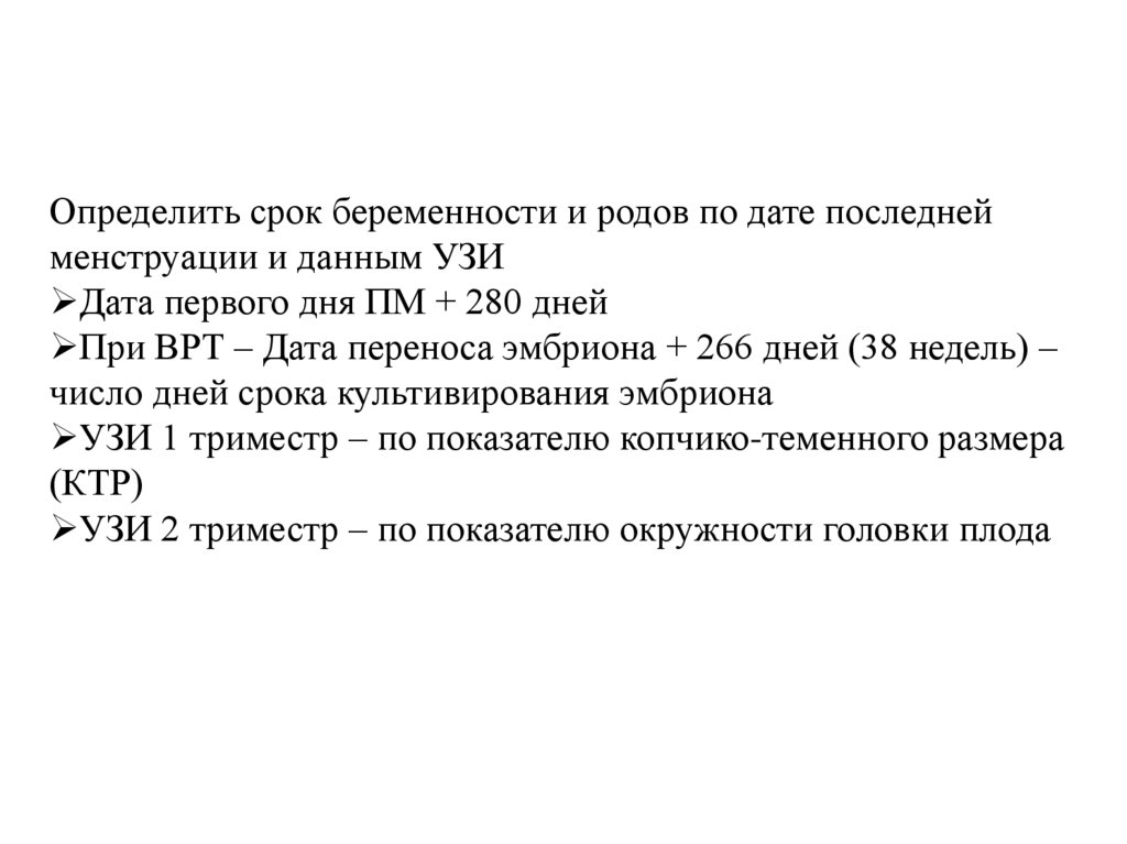 Определить срок беременности и родов по дате последнейменструации и данным УЗИ