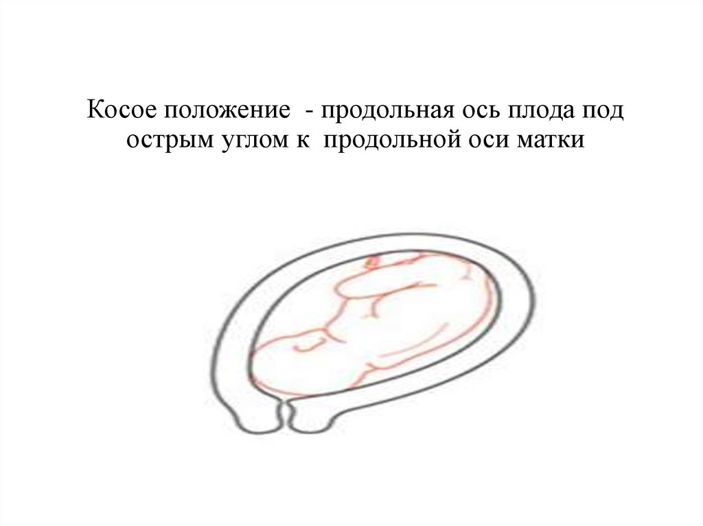 Косое положение - продольная ось плода подострым углом к продольной оси матки
