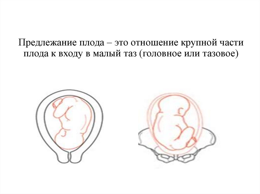 Предлежание плода – это отношение крупной частиплода к входу в малый таз (головное или тазовое)