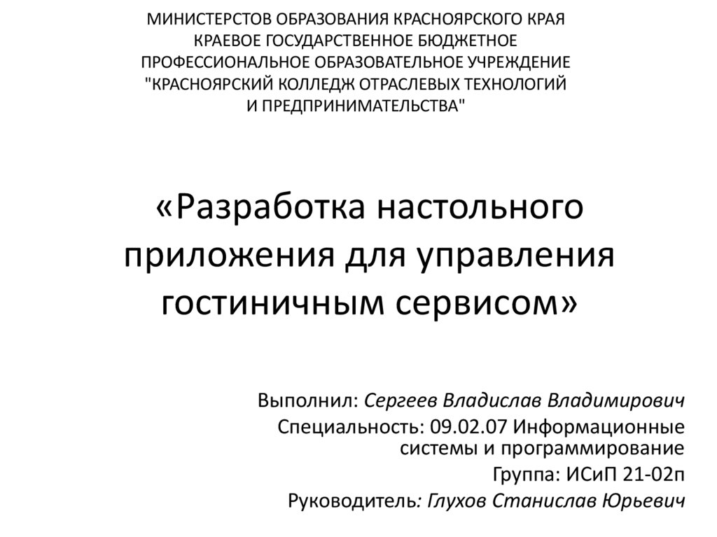 1. «Разработка настольного приложения для управления гостиничным сервисом»
