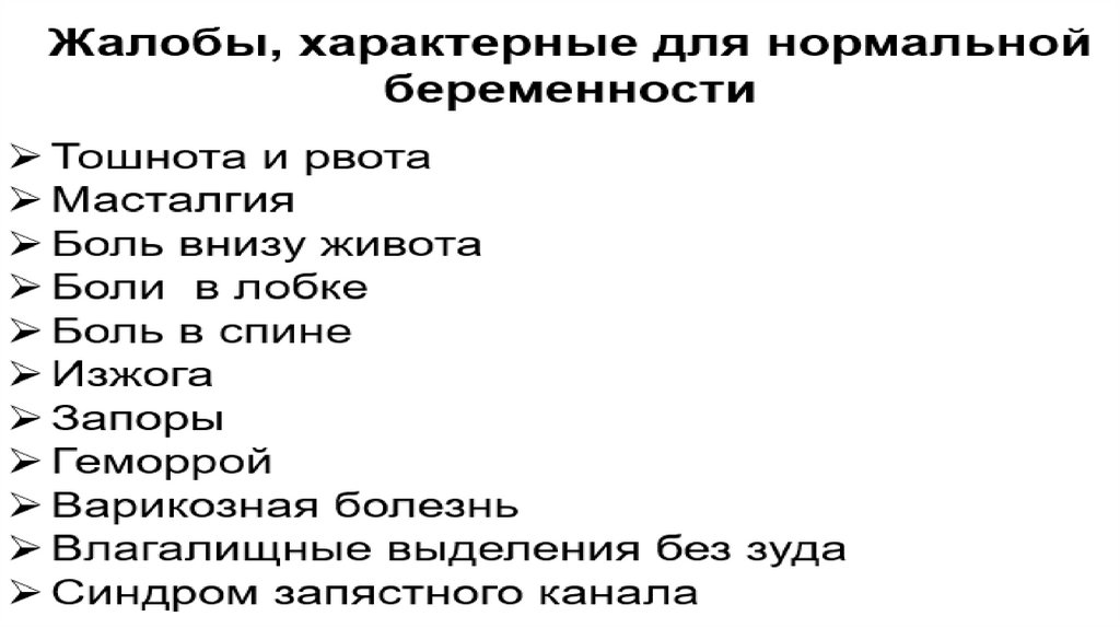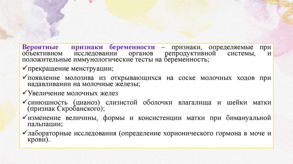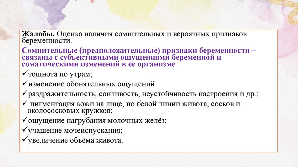 Жалобы. Оценка наличия сомнительных и вероятных признаковбеременности.