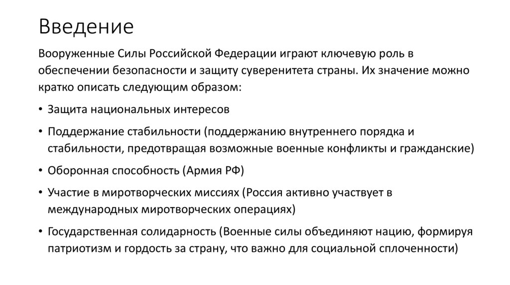 ВведениеВооруженные Силы Российской Федерации играют ключевую роль в