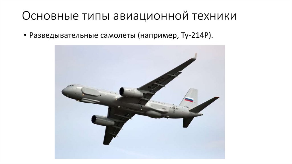 Основные типы авиационной техники• Разведывательные самолеты (например, Ту-214Р).