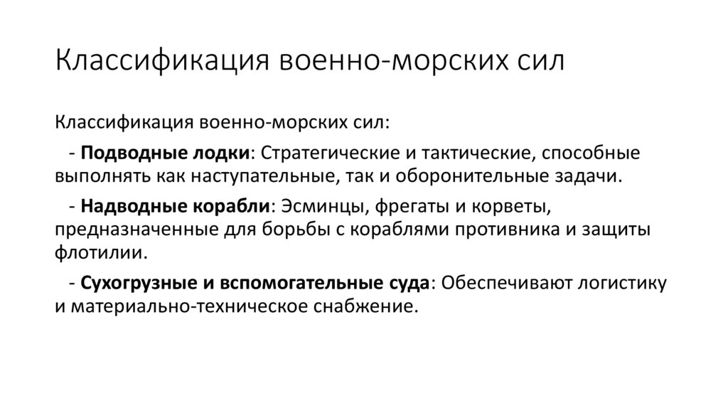 Классификация военно-морских силКлассификация военно-морских сил: