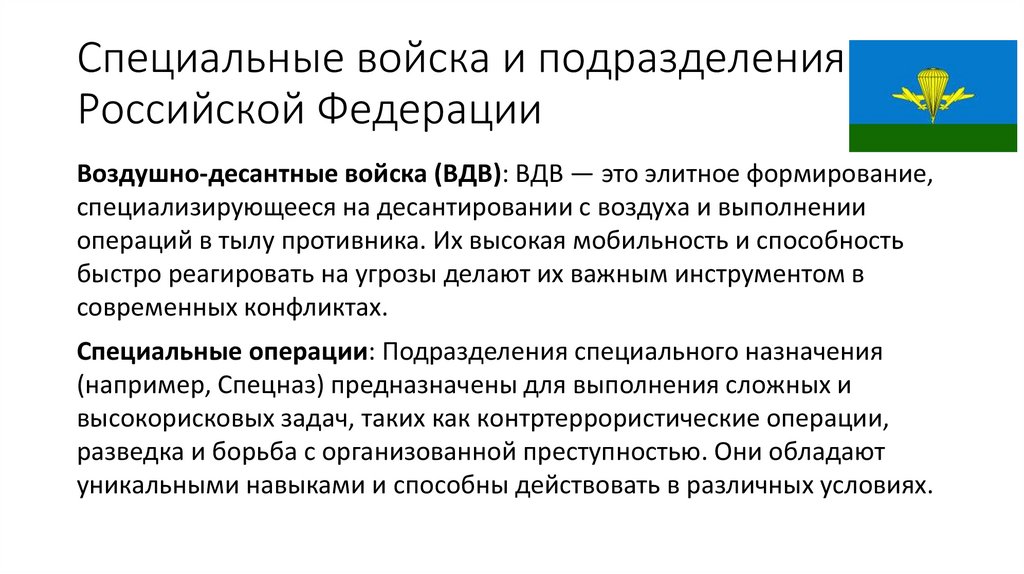 Воздушно-десантные войска (ВДВ): ВДВ — это элитное формирование,