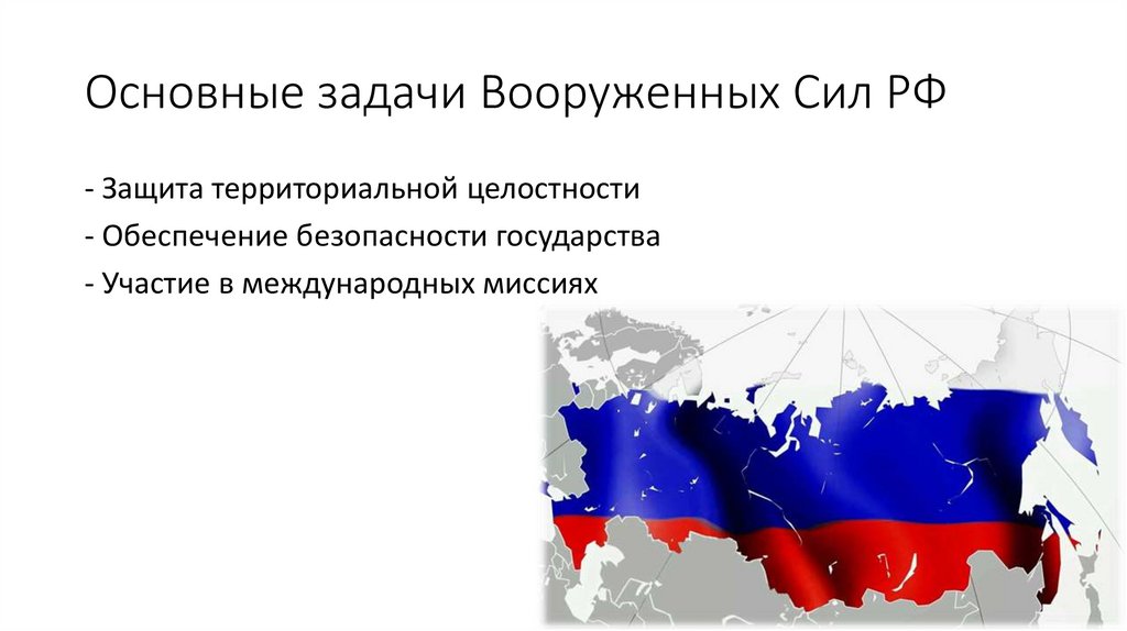 Основные задачи Вооруженных Сил РФ- Защита территориальной целостности
