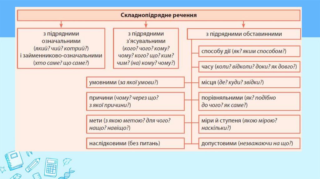 До наведених головних частин додайте підрядні.Визначте вид підрядних.