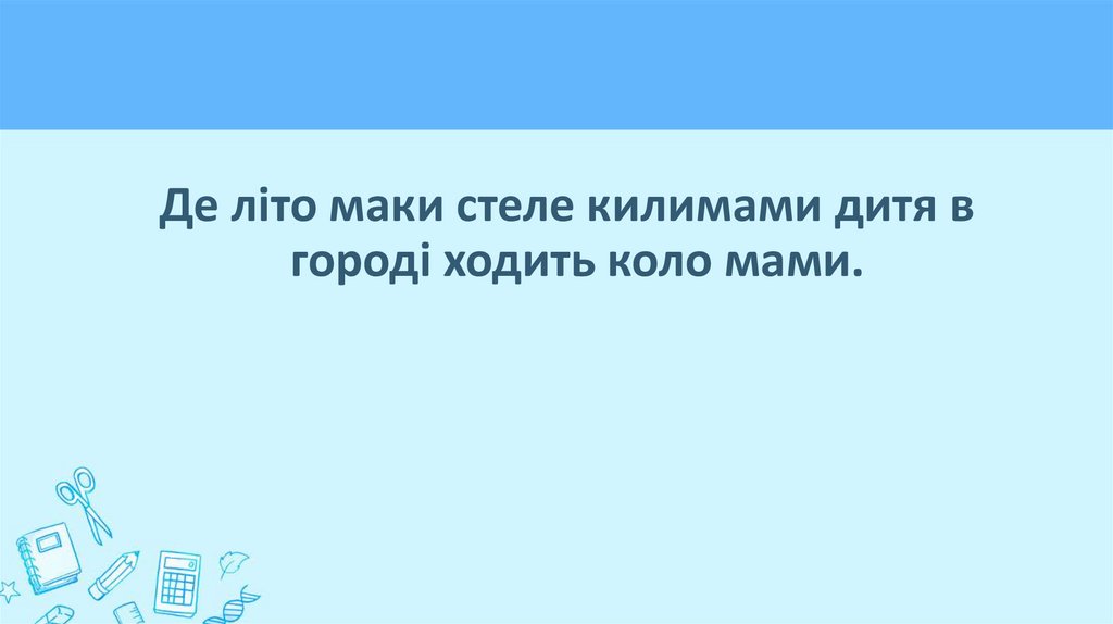 Де літо маки стеле килимами, дитя вгороді ходить коло мами.