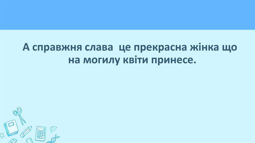 А справжня слава - це прекрасна жінка, що намогилу квіти принесе.