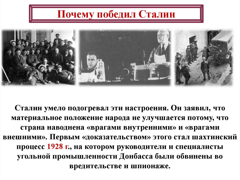 Почему победил СталинСталин, подводя итоги шахтинского дела, выдвинул тезис,