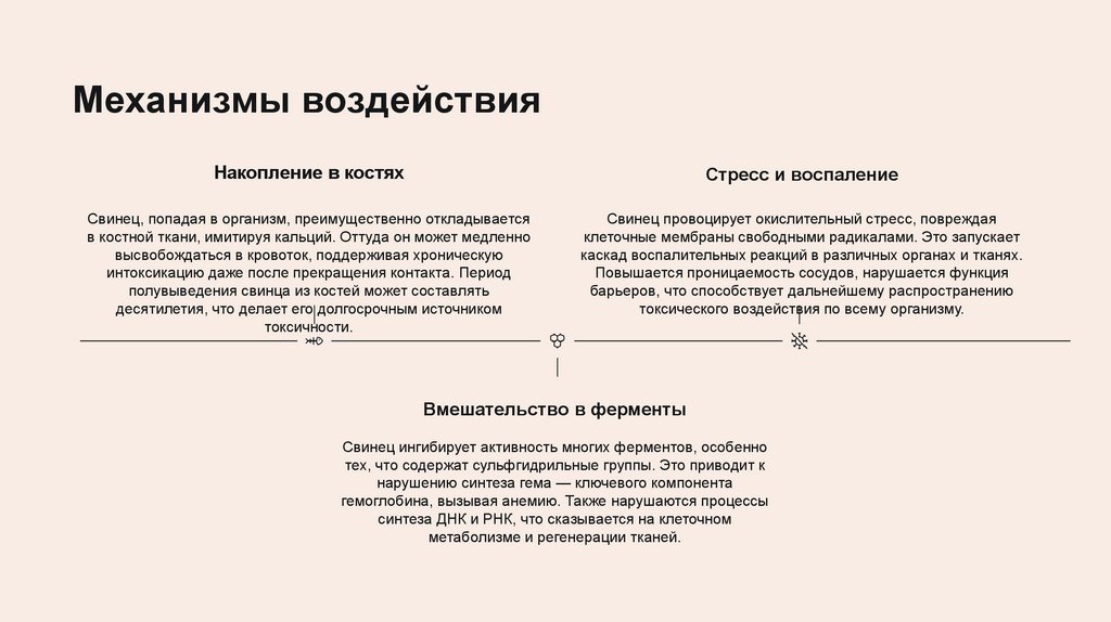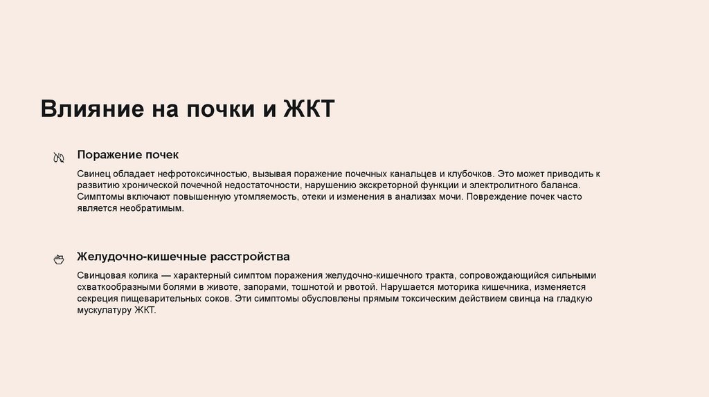 секреция пищеварительных соков. Эти симптомы обусловлены прямым токсическим действием свинца на гладкую