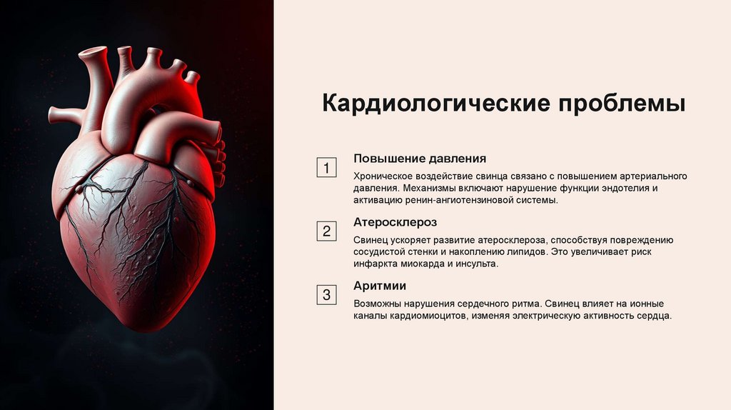 Возможны нарушения сердечного ритма. Свинец влияет на ионные