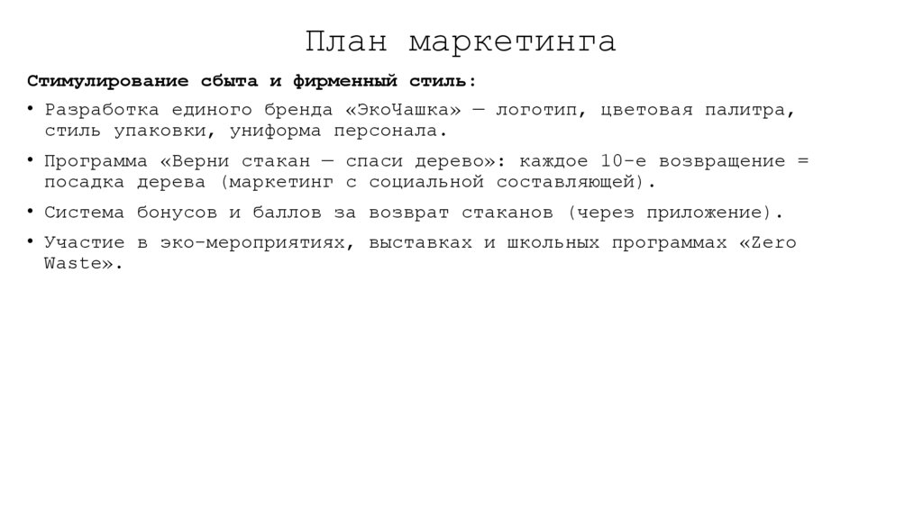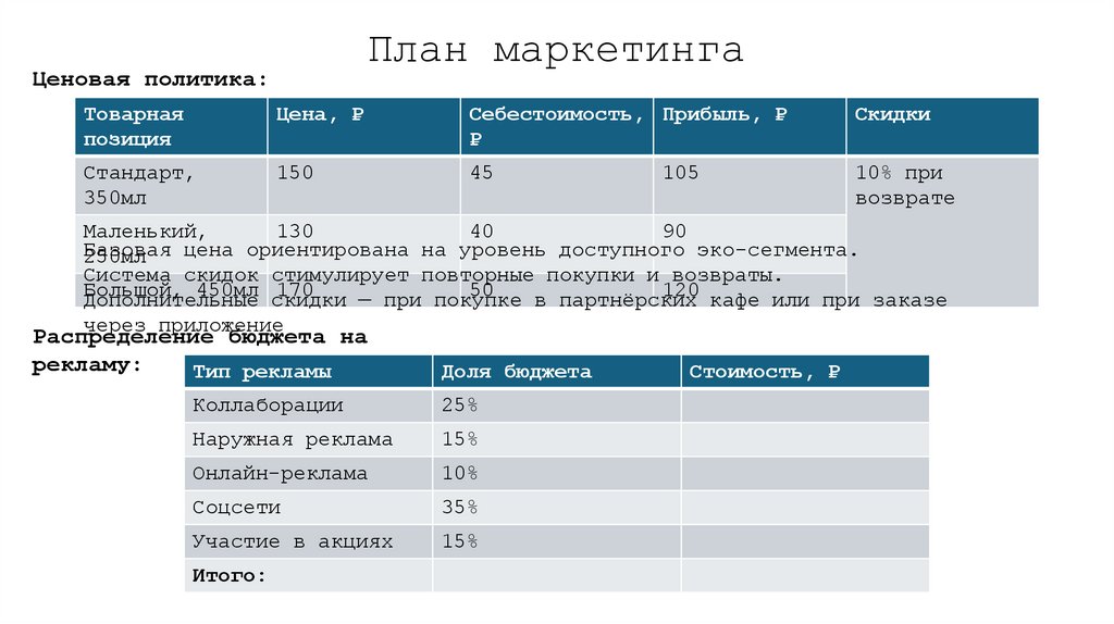 План маркетингаСтимулирование сбыта и фирменный стиль:
