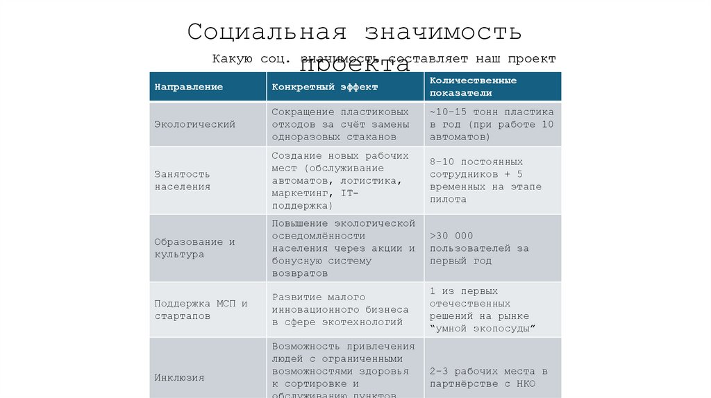 Социальная значимостьКакую соц. значимость составляет наш проект