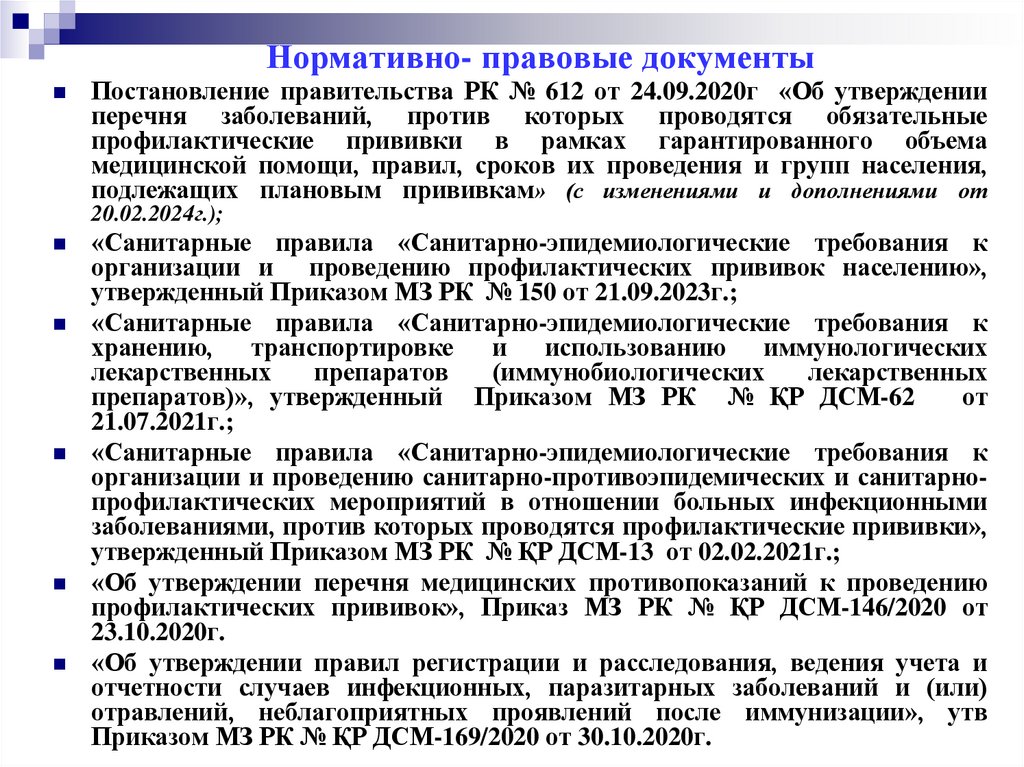 Постановление правительства РК № 612 от 24.09.2020г «Об утвержденииперечня заболеваний, против которых проводятся обязательные