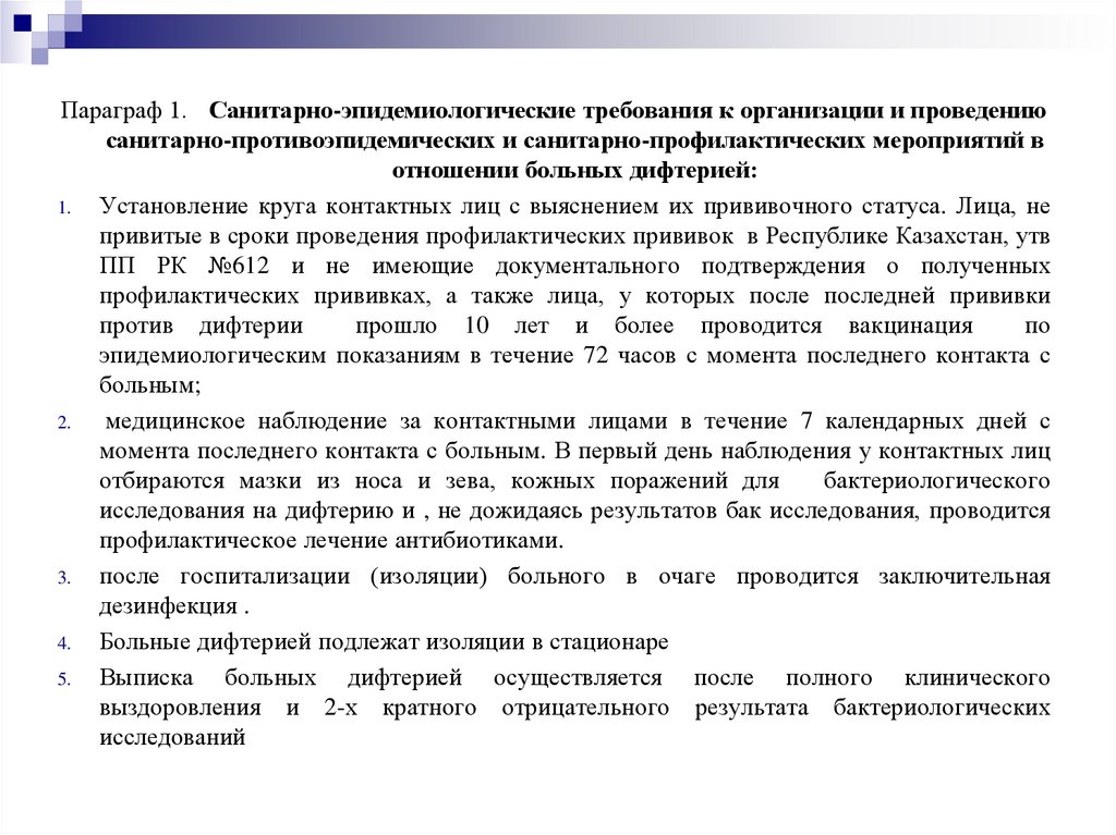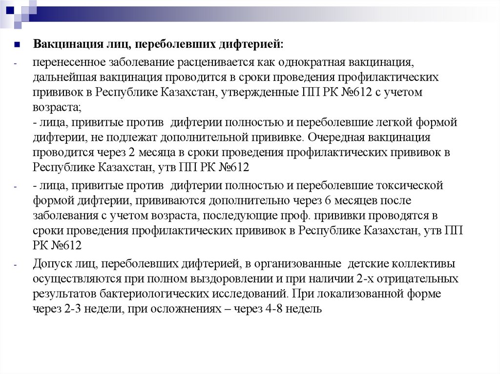 Допуск лиц, переболевших дифтерией, в организованные детские коллективы