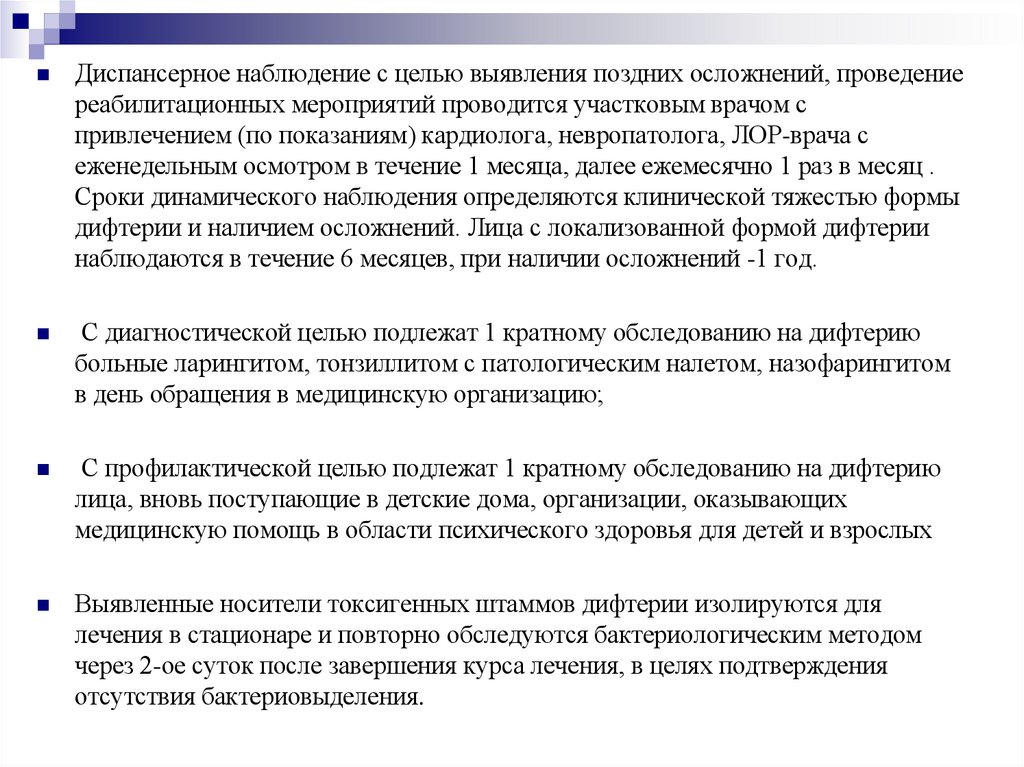 дифтерии и наличием осложнений. Лица с локализованной формой дифтерии