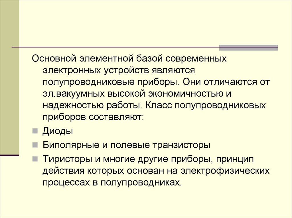 Основной элементной базой современныхэлектронных устройств являются
