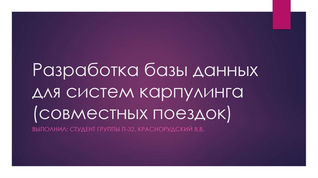 1. Разработка базы данных для систем карпулинга (совместных поездок)