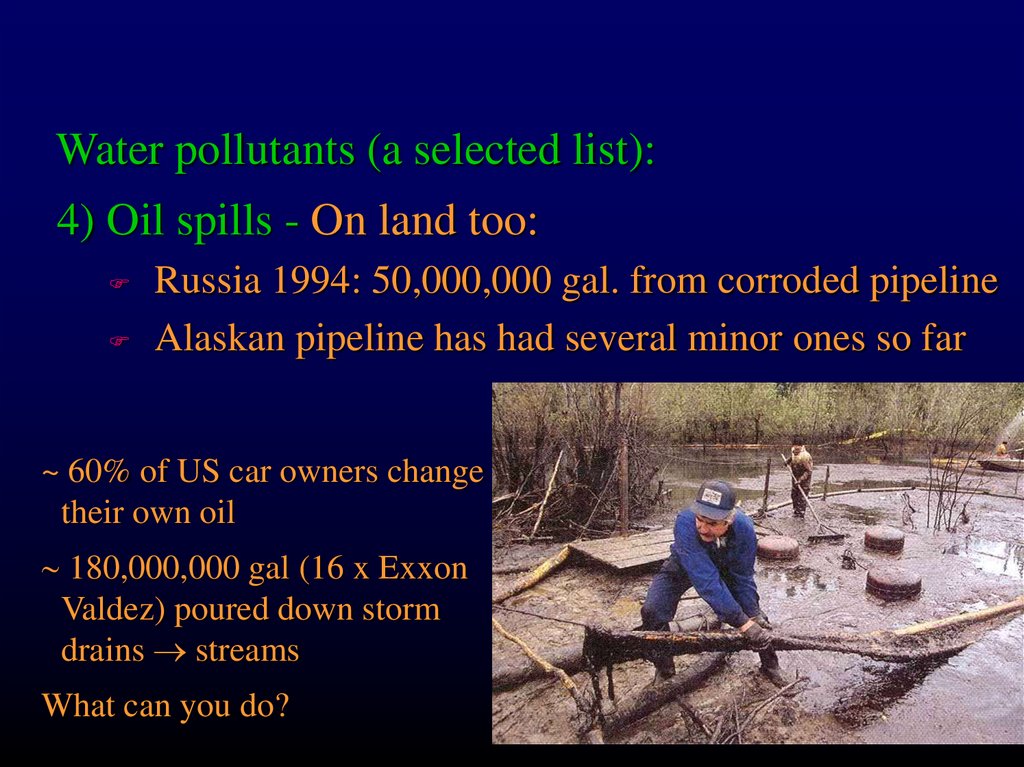 Water pollutants (a selected list):4) Oil spills - On land too: