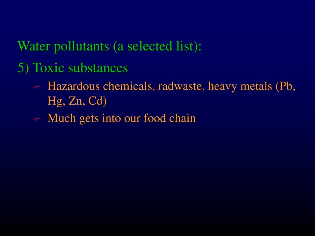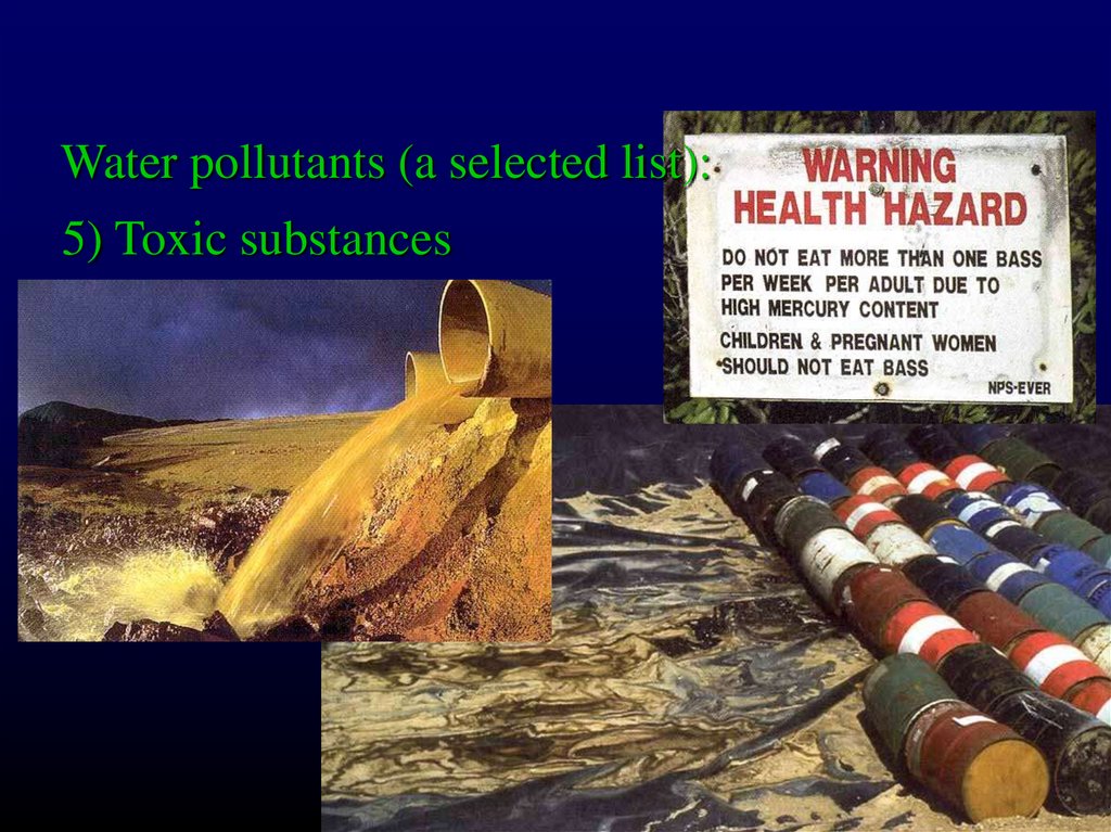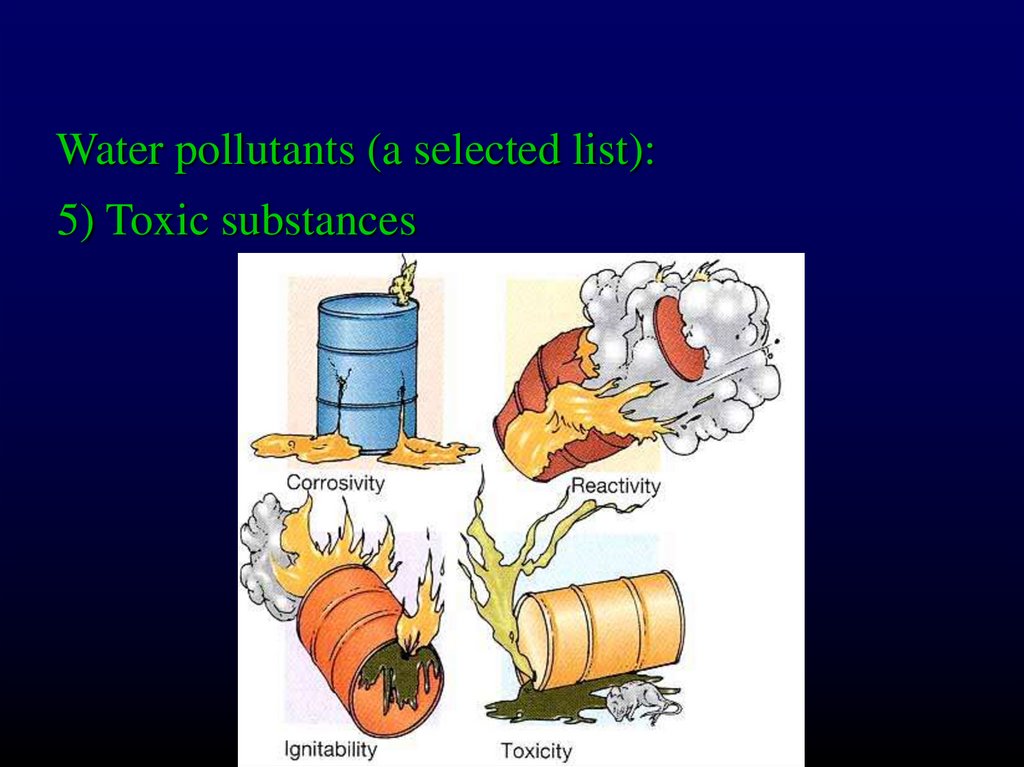 Water pollutants (a selected list):5) Toxic substances