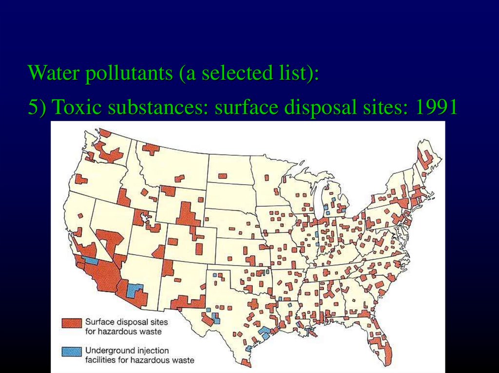 Water pollutants (a selected list):5) Toxic substances: surface disposal sites: 1991