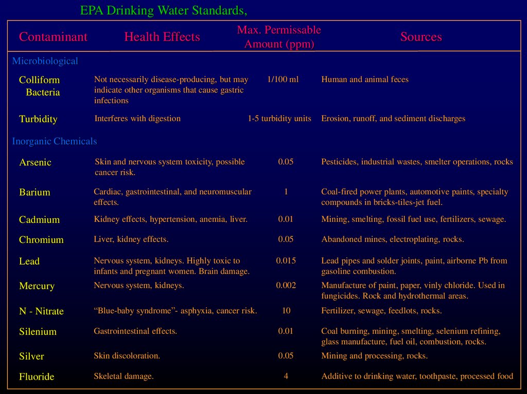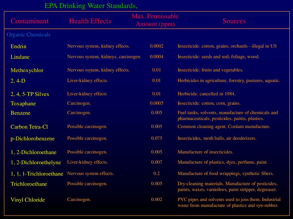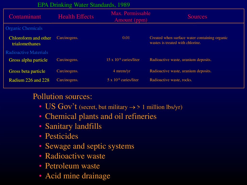 EPA Drinking Water Standards, 1989Contaminant