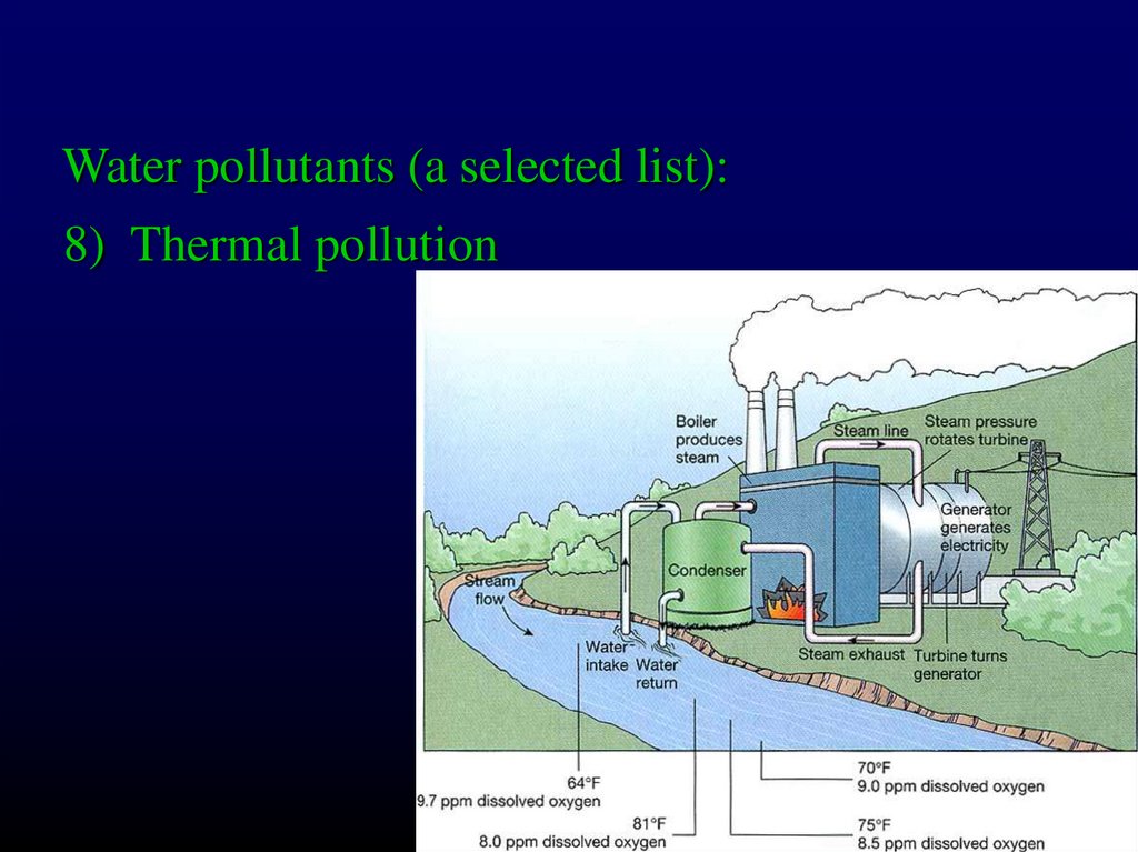 Water pollutants (a selected list):8) Thermal pollution