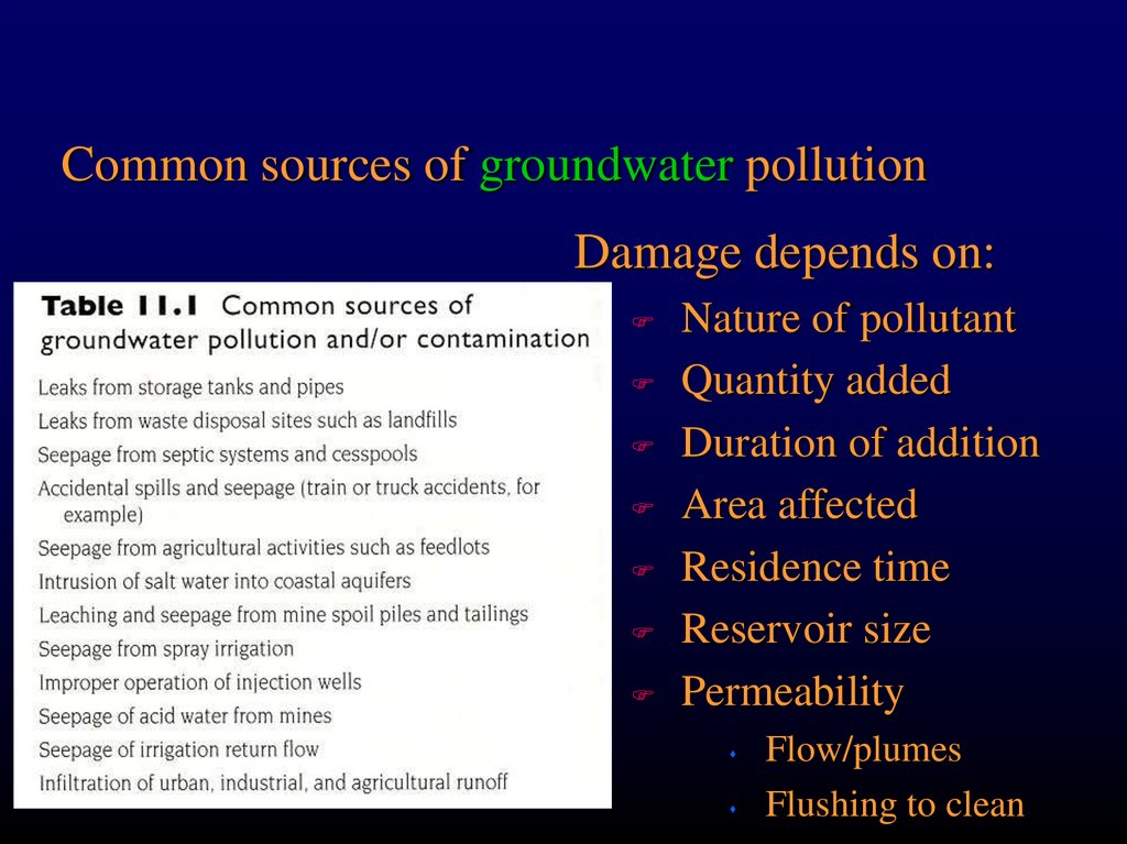 Common sources of groundwater pollutionDamage depends on: