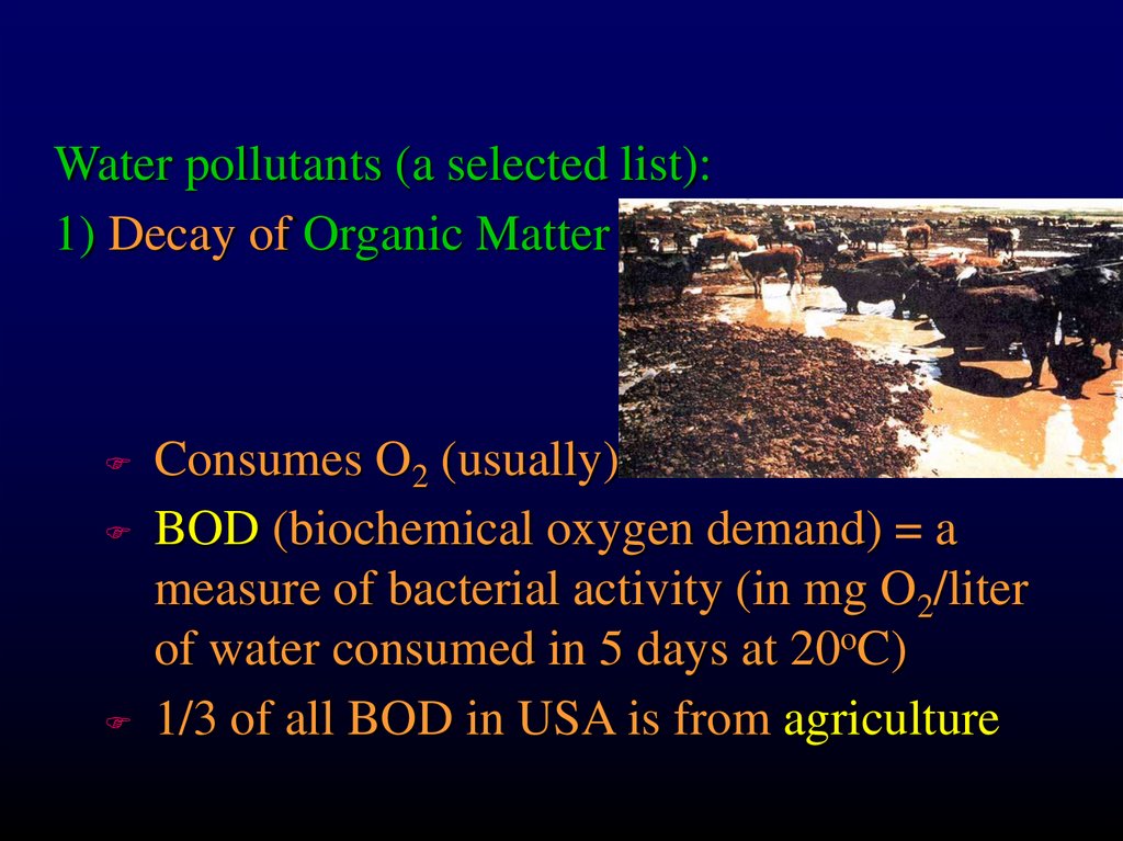 Water pollutants (a selected list):1) Decay of Organic Matter