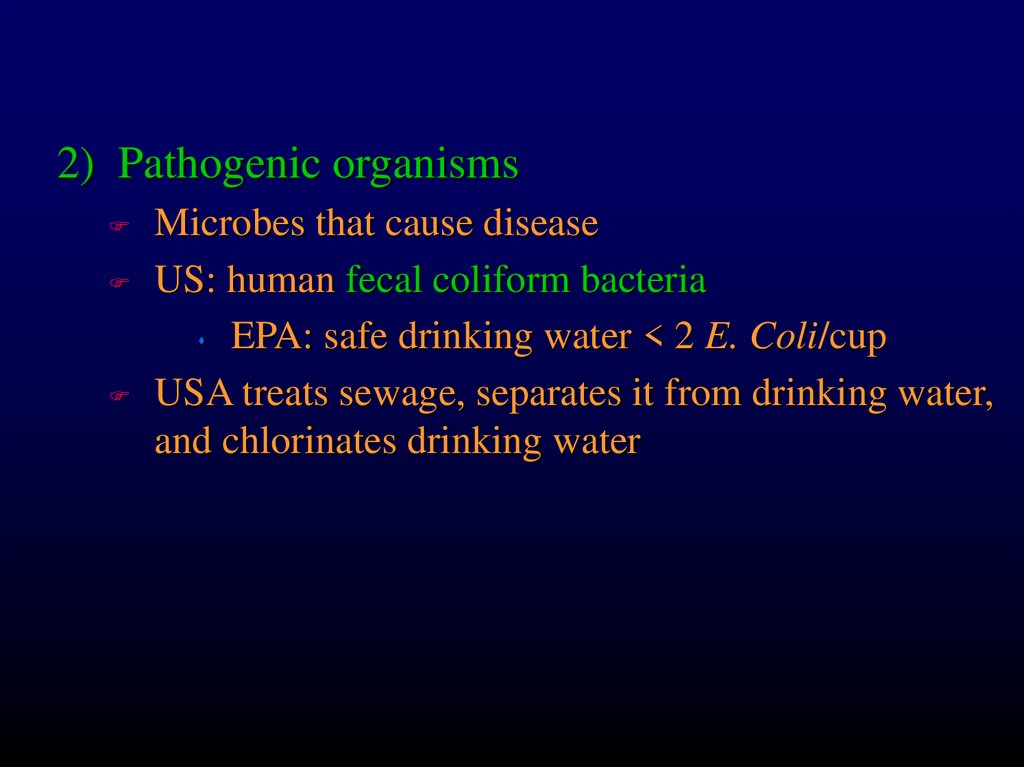 EPA: safe drinking water < 2 E. Coli/cup