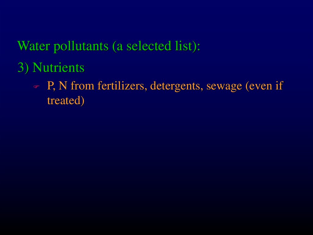 Water pollutants (a selected list):3) Nutrients