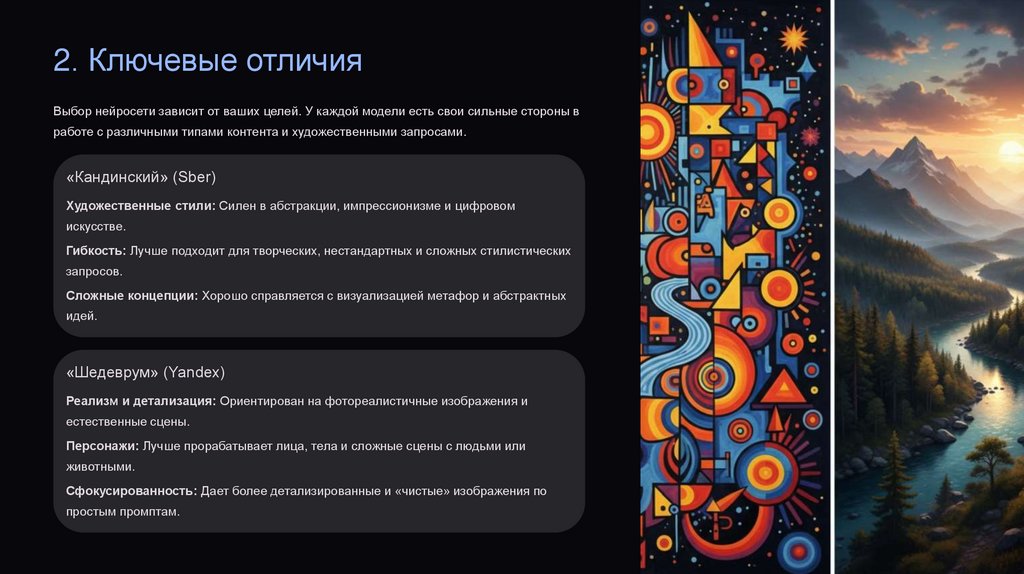 2. Ключевые отличияВыбор нейросети зависит от ваших целей. У каждой модели есть свои сильные стороны в