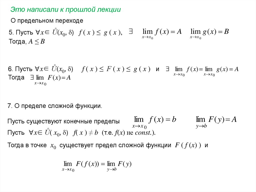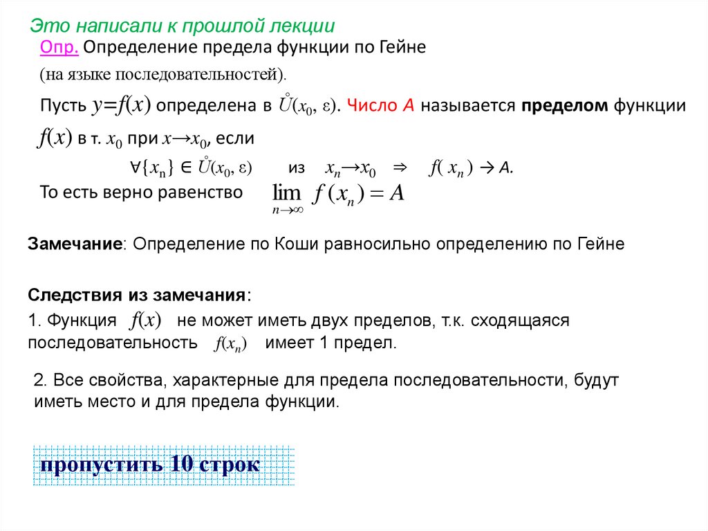 Это написали к прошлой лекцииОпр. Определение предела функции по Гейне