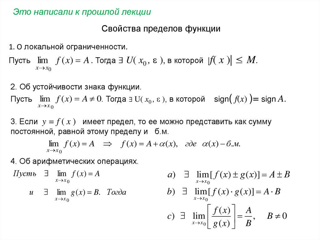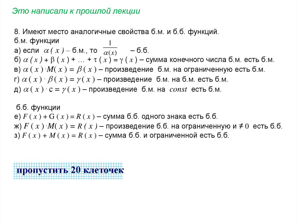 Это написали к прошлой лекции8. Имеют место аналогичные свойства б.м. и б.б. функций.
