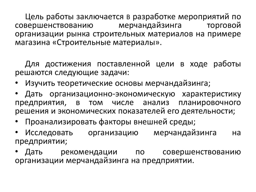 Цель работы заключается В разработке мероприятий посовершенствованию