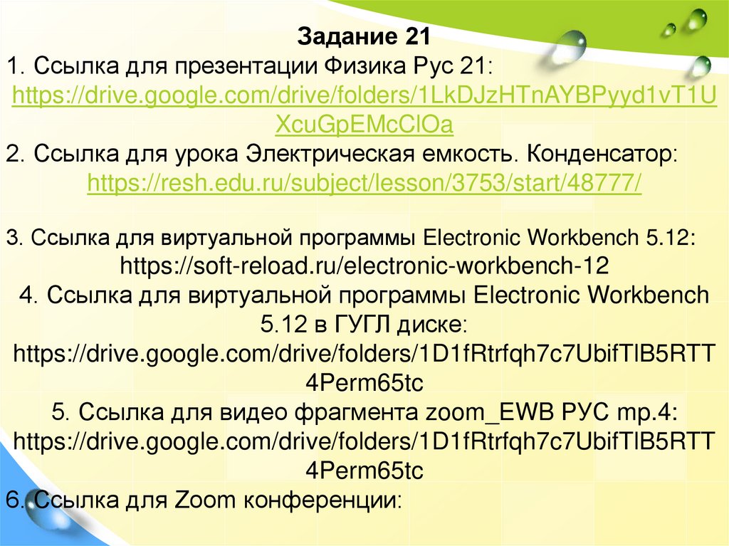 Задание 211. Ссылка для презентации Физика Рус 21: