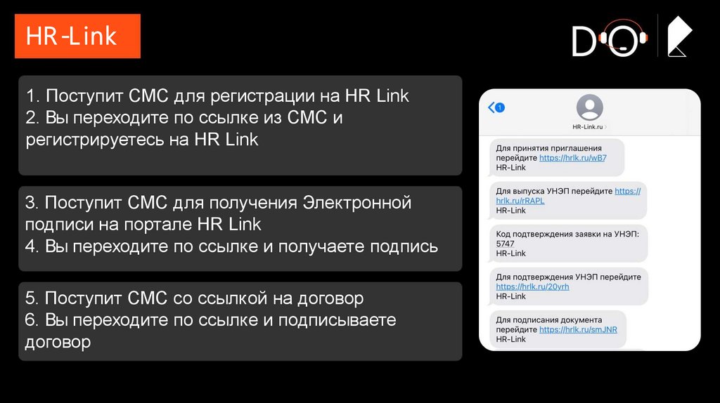 HR -L ink1. Поступит СМС для регистрации на HR Link