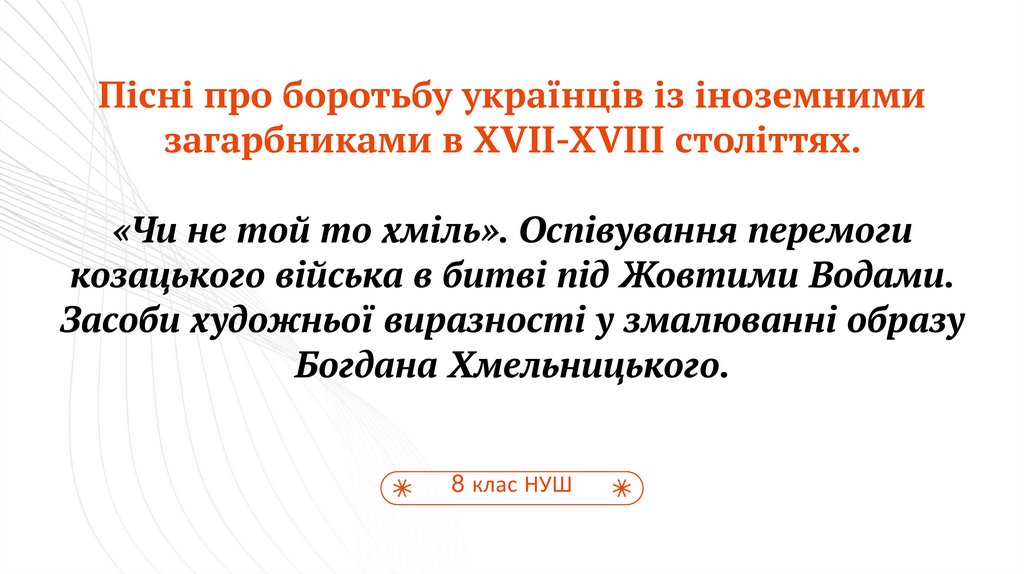 22. Пісні про боротьбу українців із іноземними загарбниками в ХVІІ-ХVІІІ століттях. «Чи не той то хміль». Оспівування перемоги козацько