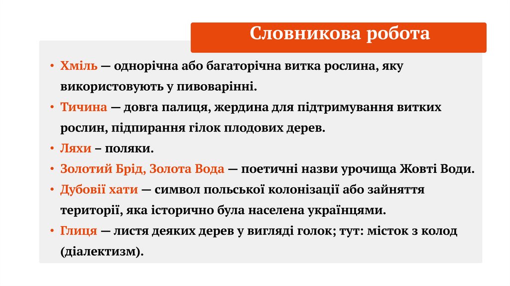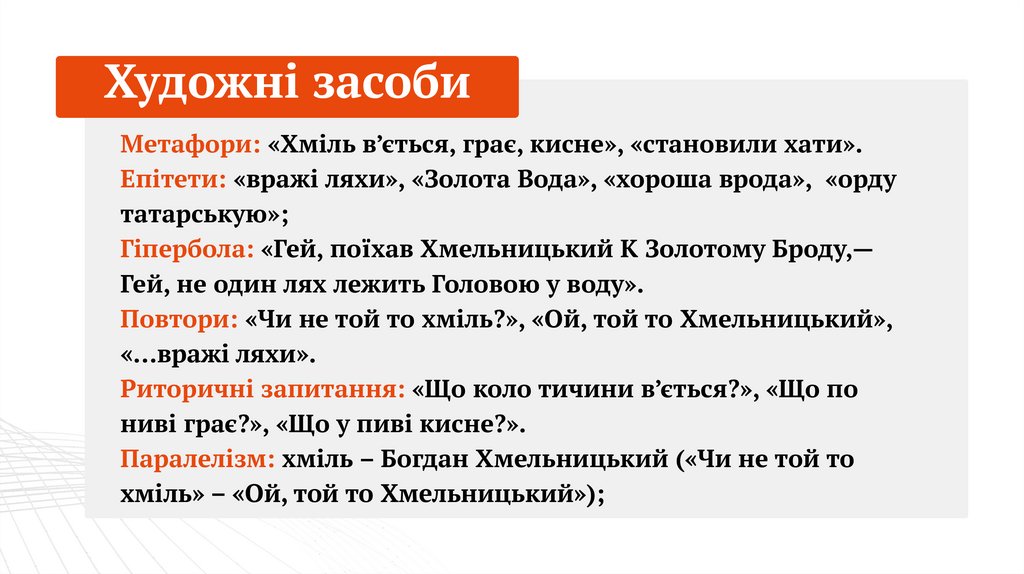 Художні засобиМетафори: «Хміль в’ється, грає, кисне», «становили хати».